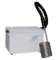 只将冷却线圈投入到水槽内,可冷却槽内的液体。 使用例 对应从实验室用到产业用的各种各样的用途。 ●在夏季常温保持和样品的发热等方面抑制温度上升。 可以进行恒温槽●组合室温上下的温度控制、20℃,25℃的测定、恒温试验。 零下温度的化学实验和有机合成等创造出必要的零下温度环境。 ●作为放置在各种装置内的冷却水的制造装置而使用。 ●冷却大容量的水、循环装置机器的间接冷却、样品的喷射环用冷